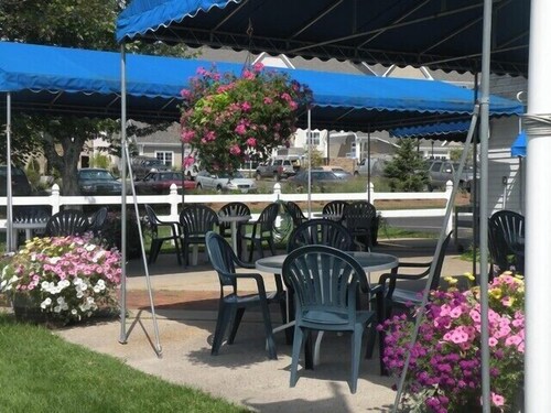 North Conway NH 03860. It was across the tree from the hotel. Peaches Restaurant Outdoor seating is first come first served.